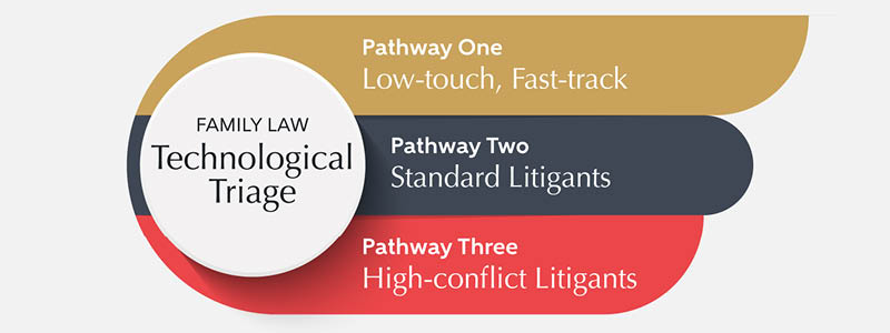 Similar to medical triage, which sets an order of priority for incoming patients, this system uses an online data repository to categorize cases into three distinct categories: Pathway 1 (low-touch, fast-track), Pathway 2 (standard litigants) and Pathway 3 (high-conflict litigants).